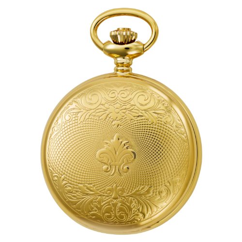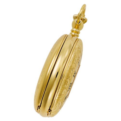 - Classic and elegant gold-tone Roman numeral design exhibition covered pocket watch